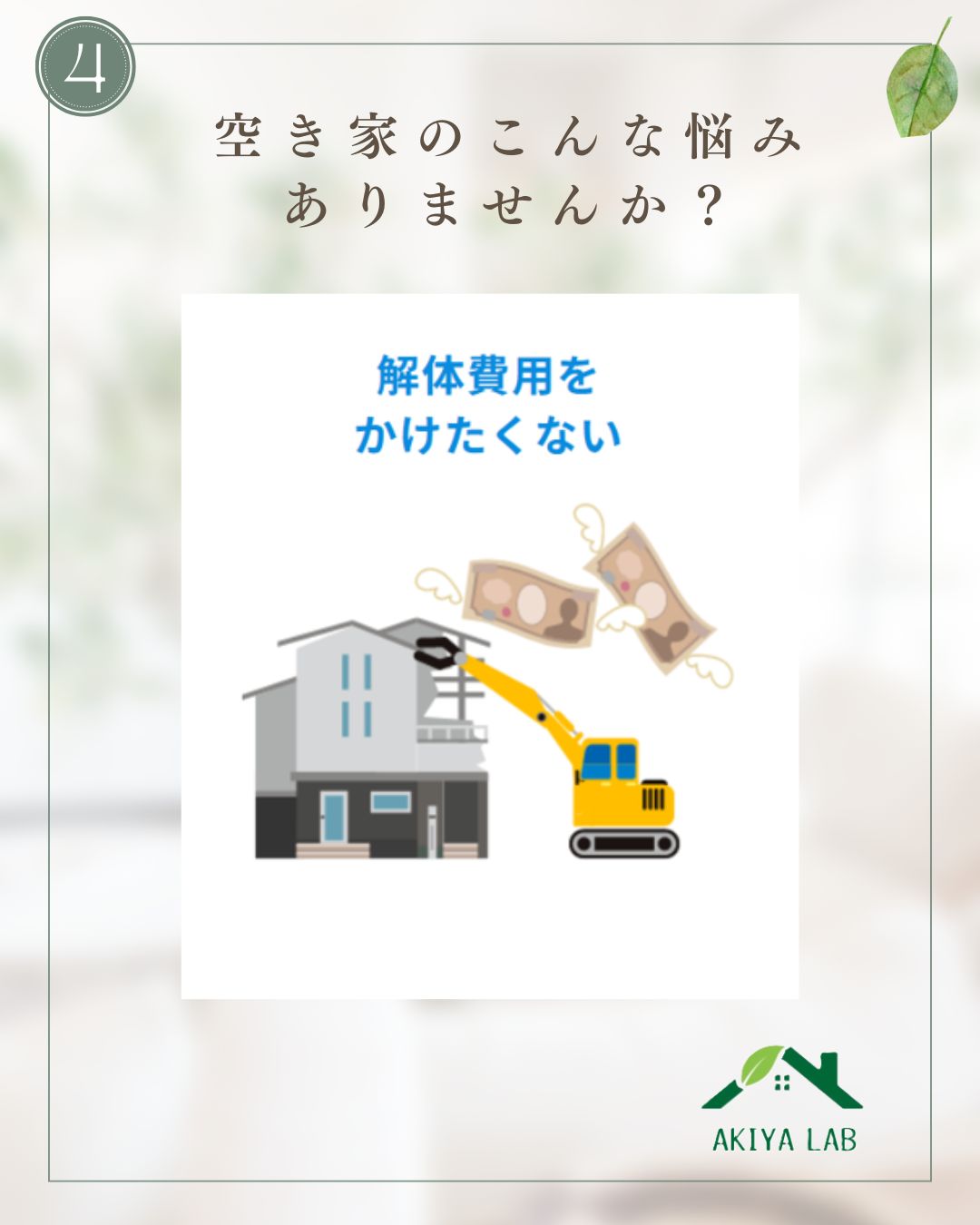 空き家になっている理由にはこんなことがありせんか? ・解体費用がかかる 費用をかけたくない ・家財・荷物がそのままで片付けられない そんな空き家、土地を活かしてみませんか? 一緒に解決方法を考えてみませんか?