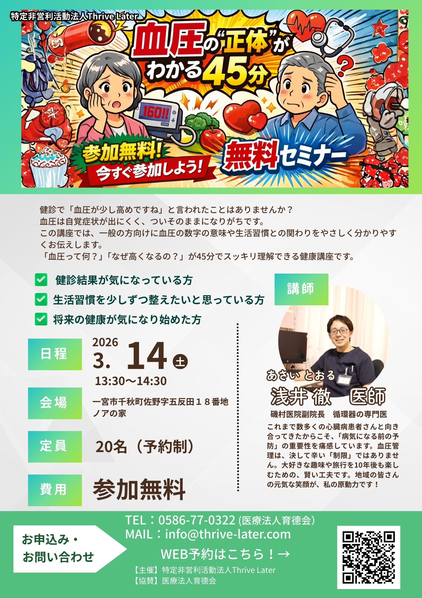 ※医療行為ではなく、健康づくり・予防の視点から学べる市民向けセミナーです。