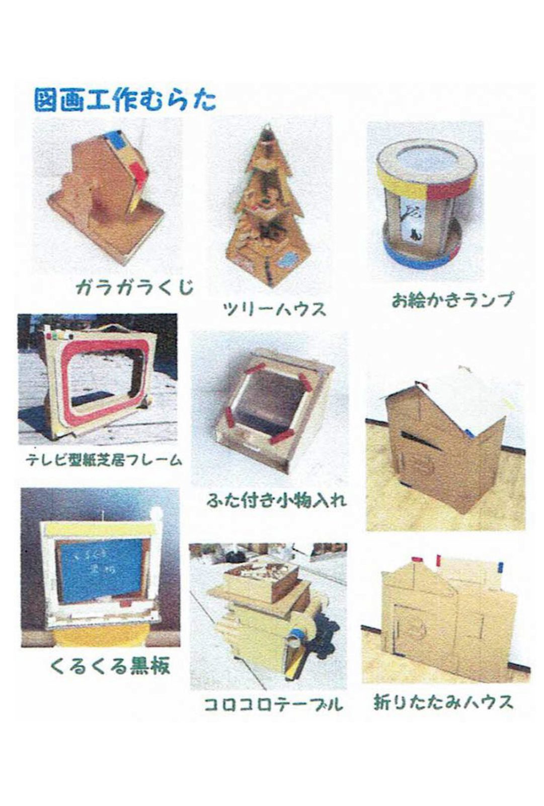 身近な素材であるダンボールを使って、遊べるおもちゃやマガジンラック、時計など、さまざまなアイテムを作成します♪ |