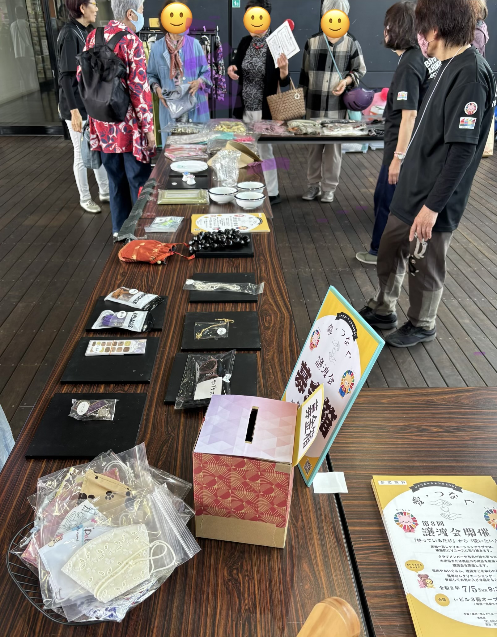 朝から暑い一日となりましたが、 多くの皆さまにご来場いただき、誠にありがとうございました。 新聞記事をご覧になり、 須ヶ口からお越しくださった方もいらっしゃいました。 心より御礼申し上げます。 おかげさまで、 第7回譲渡会も無事に終了いたしました。 今回は新たなレクリエーションゲームを取り入れ楽しんでもらい、 品物をお選びいただく機会をご提供することができました。 次回、第8回譲渡会は、 下記のとおり開催を予定しております。 【第8回譲渡会】 日時:令和8年7月5日(日)9:30~12:00 会場:i-ビル3階オープンギャラリー(尾張一宮駅ビル) 皆さまのご来場を、スタッフ一同心よりお待ちしております。