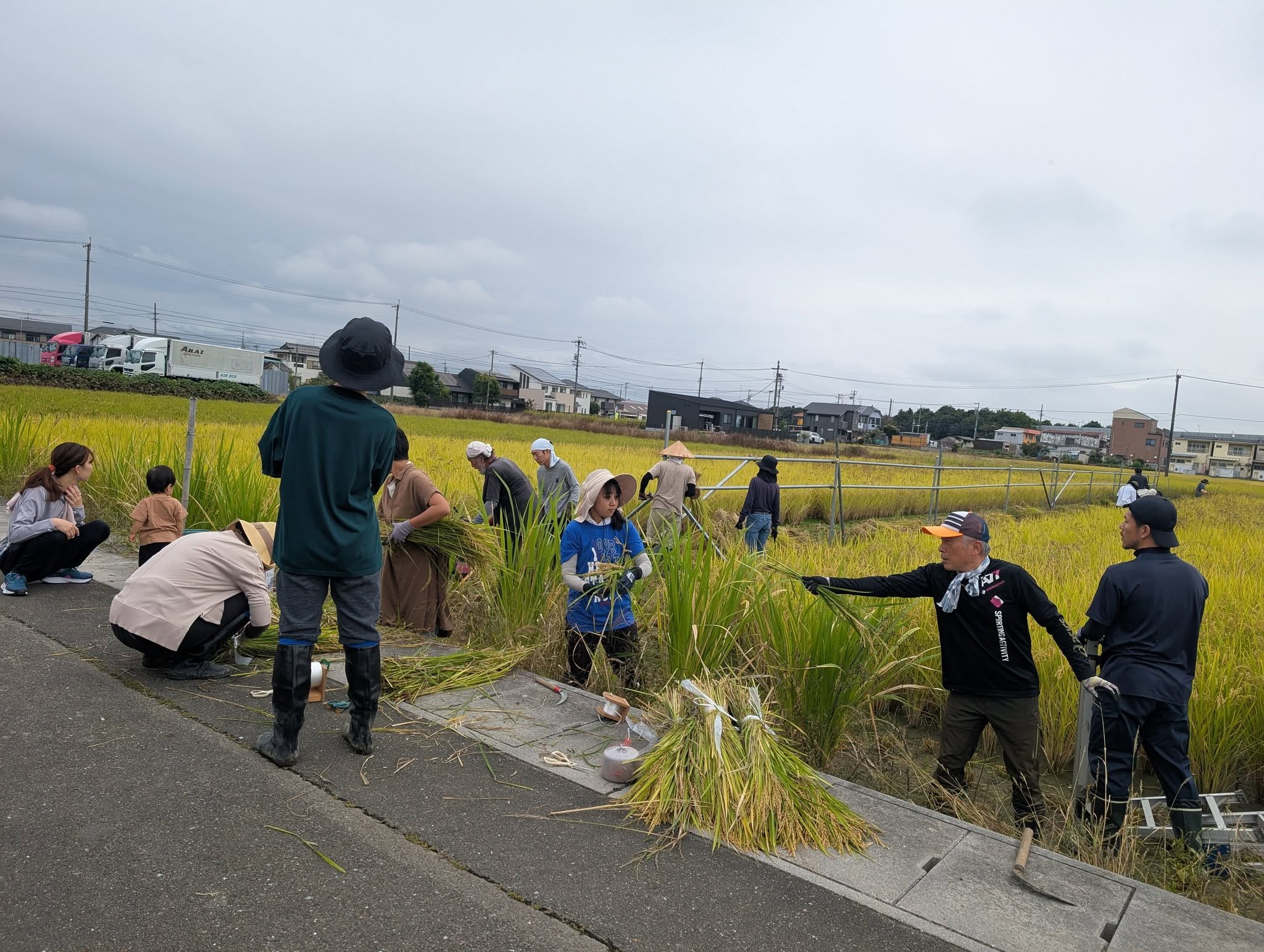 ノーティーファームの活動 グループ兼業農家プロジェクト 稲作チャレンジの稲刈りと稲架掛け天日干しが10月12日・13日に行われました。 |