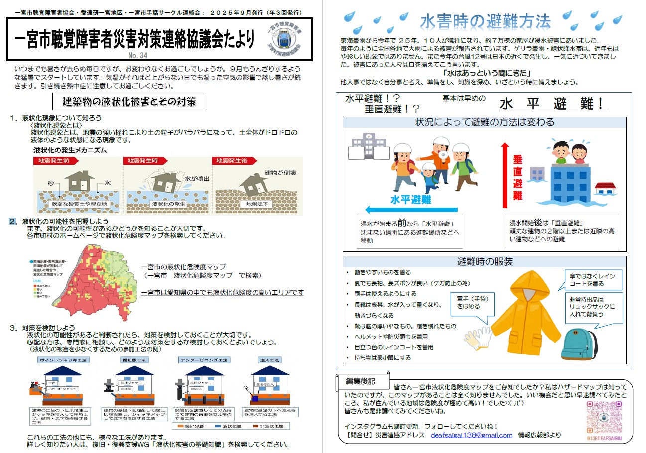 今回は、「液状化被害とその対策」及び「水害時の避難方法」についてまとめました。「一宮市液状化危険度マップ」で危険度を知って対策をしておけば、被害を少なくできるかもしれません |